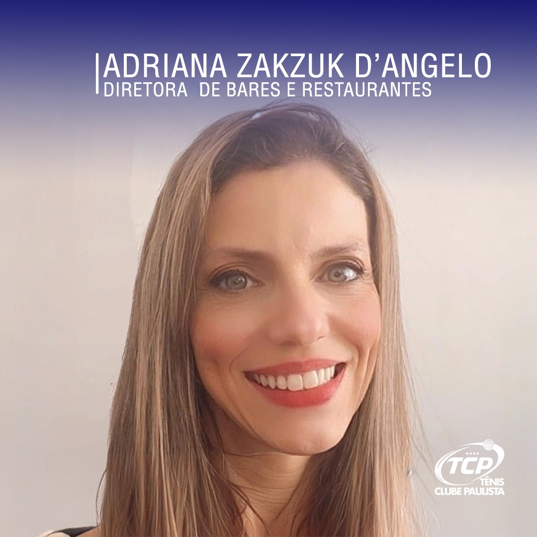 Sou a Adriana Zakzuk D’Angelo, faço parte do Conselho Deliberativo e da Comissão de Disciplina e Ética do TCP e aceitei o grande desafio de assumir a recém criada Diretoria de Bares e Restaurantes do nosso querido clube!